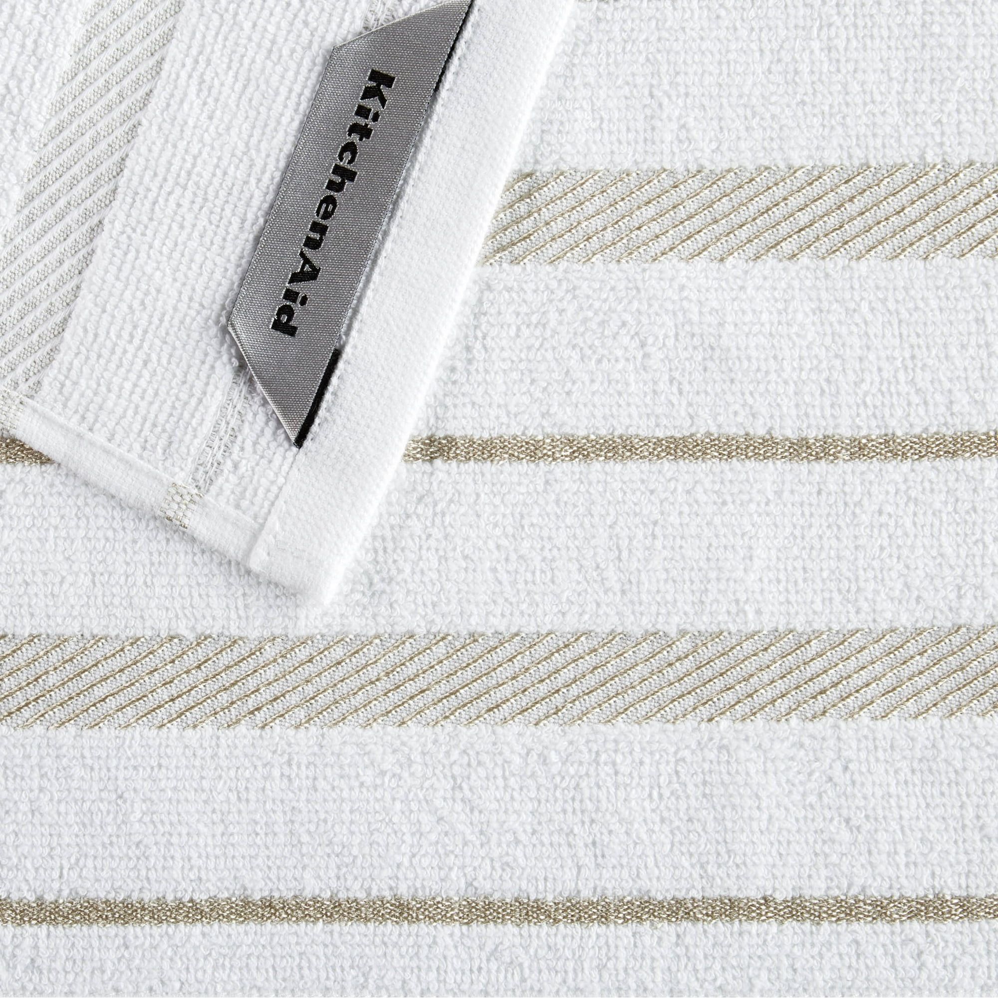 Highly Absorbent: These dishcloths are made of highly absorbent cotton, perfect for wiping spills and cleaning.Set of Eight: Includes four striped dishcloths in aqua and white and four solid aqua dishcloths, each measuring 12" x 12".Classic Design: Features a classic stripe design and solid color, adding a polished accent to any kitchen.Easy Care: Machine washable on a gentle cycle with like colors, tumble dry low, and do not iron.Versatile Use: Ideal for drying and cleaning glassware, cookware, flatware, and more, making them perfect for everyday chores.Durable Material: Made with a cotton-polyester blend for durability and versatility in tidying up.