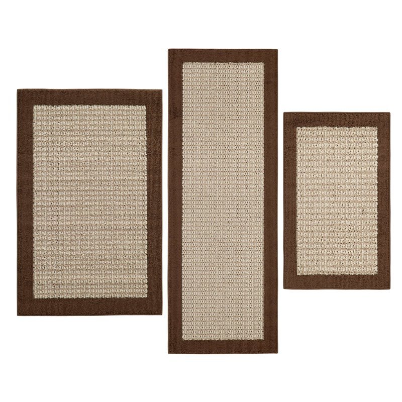 Machine Washable Faux Sisal Brown Border Indoor Accent Rug Set, 3-Piece Set Machine Washable Faux Sisal Brown Border Indoor Accent Rug Set, 3-Piece Set Machine Washable Faux Sisal Brown Border Indoor Accent Rug Set, 3-Piece Set