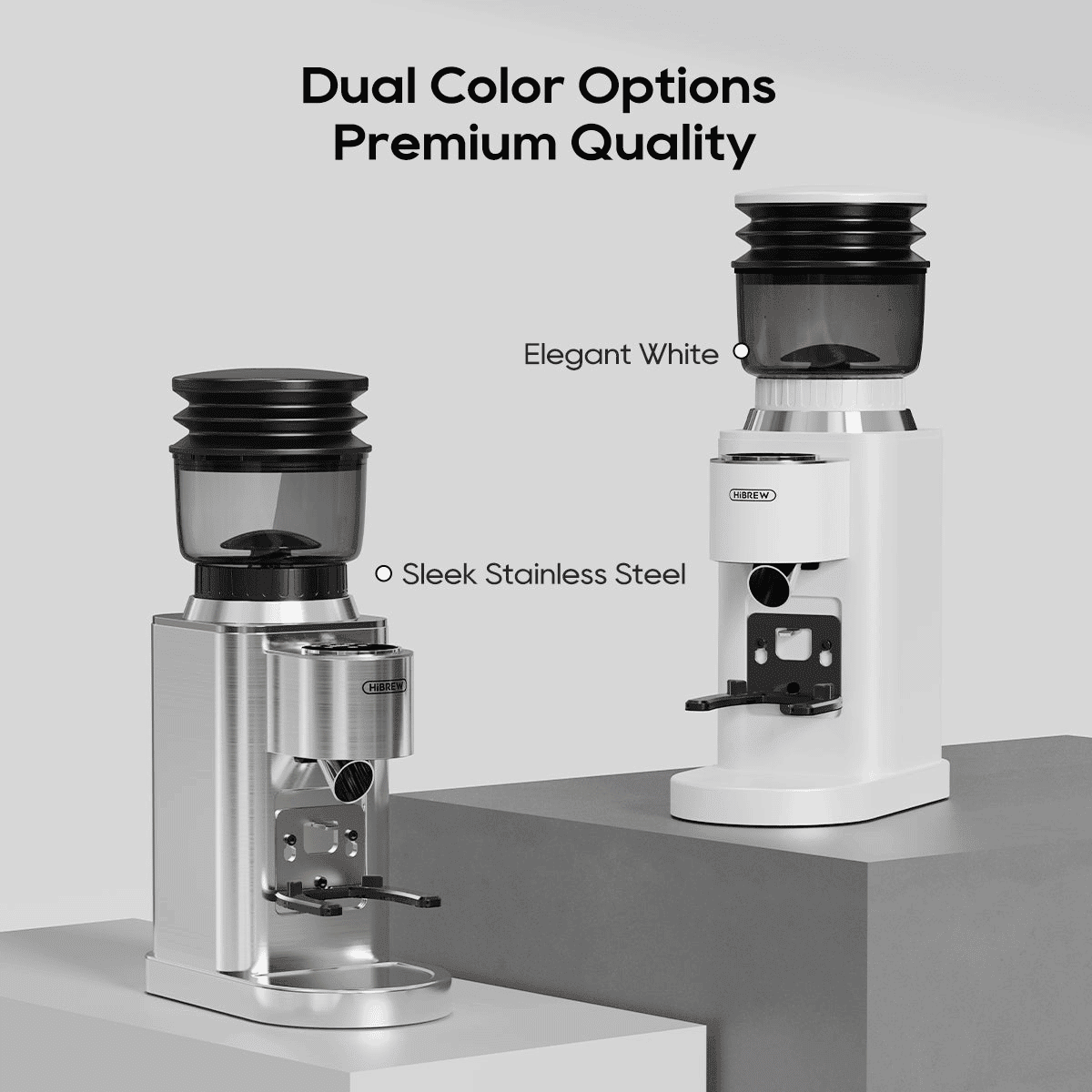 Choose from elegant white or stainless steel, the coffee grinder combines premium design with professional-grade performance.
