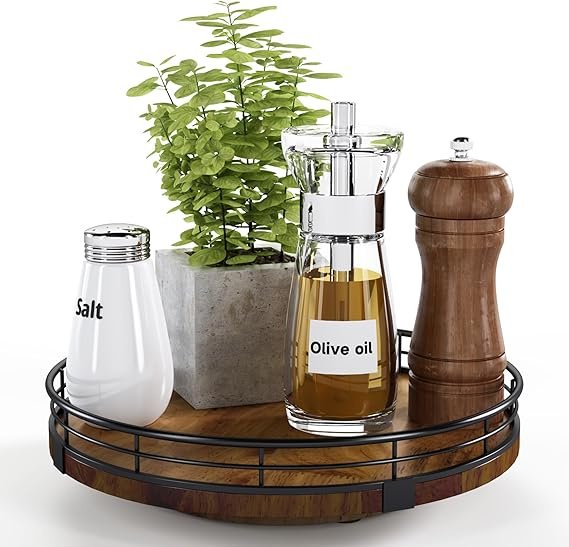 Farmhouse Oak Lazy Susan Turntable Organizer for Cabinet