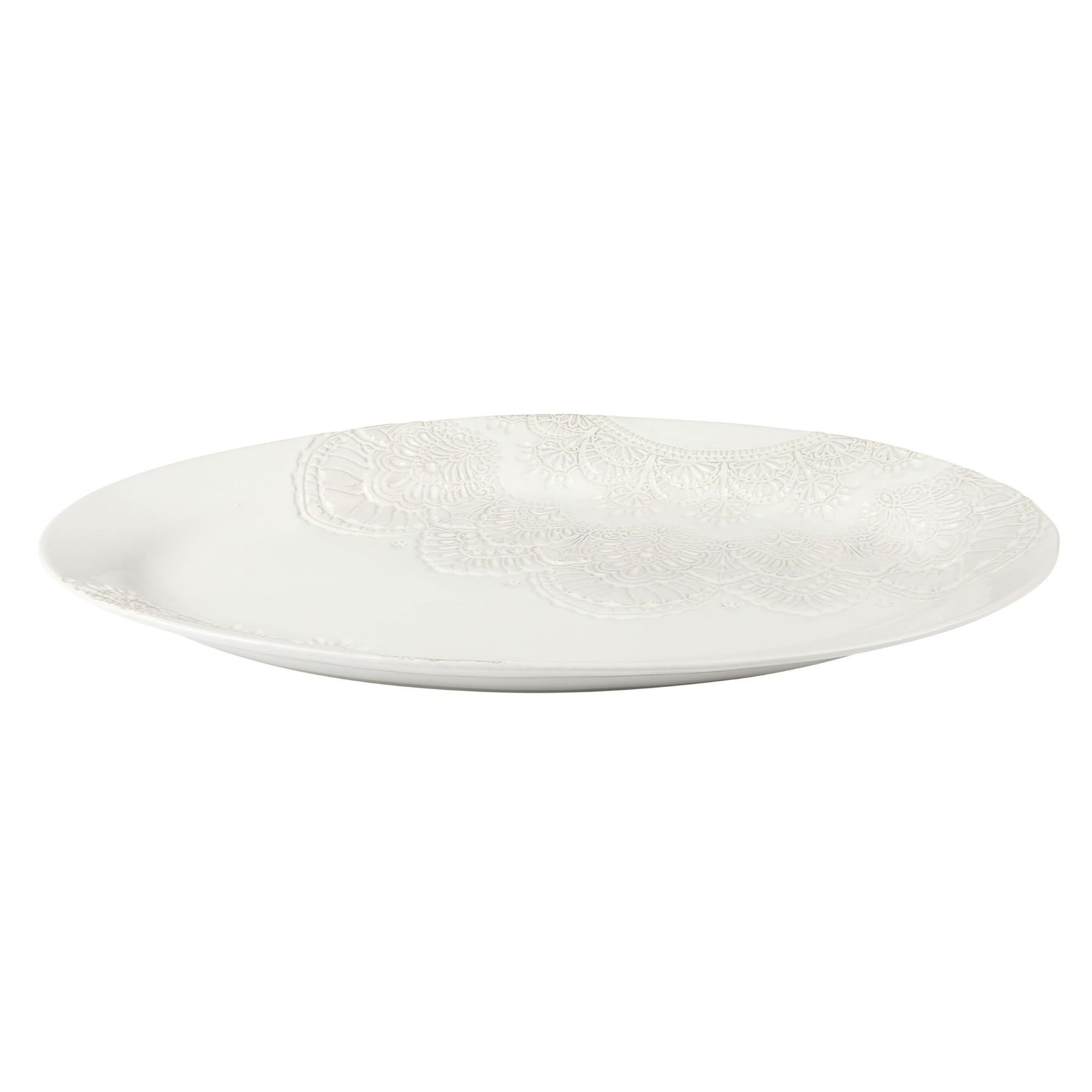 Vintage Lace 20-inch Stoneware Oval Serving Tray Platter, White Vintage Lace 20-inch Stoneware Oval Serving Tray Platter, White Vintage Lace 20-inch Stoneware Oval Serving Tray Platter, White