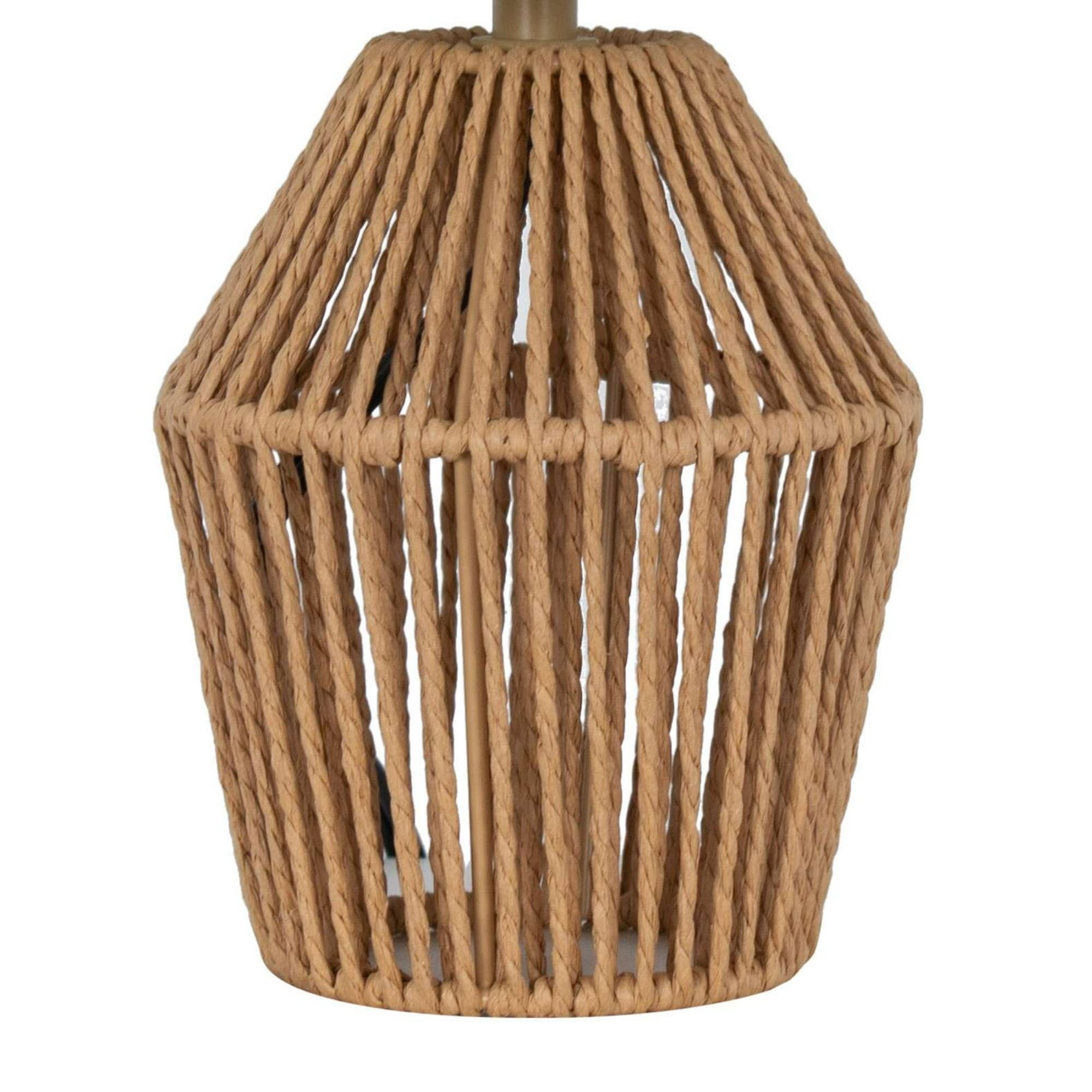 Rope Construction: The lamp base is crafted with a brown rope design, contributing to a farmhouse aesthetic that can complement diverse decor themes.White Shade: It includes a perfectly matched 5.5 x 6.5 x 6.5-inch white shade, providing a clean and versatile look.