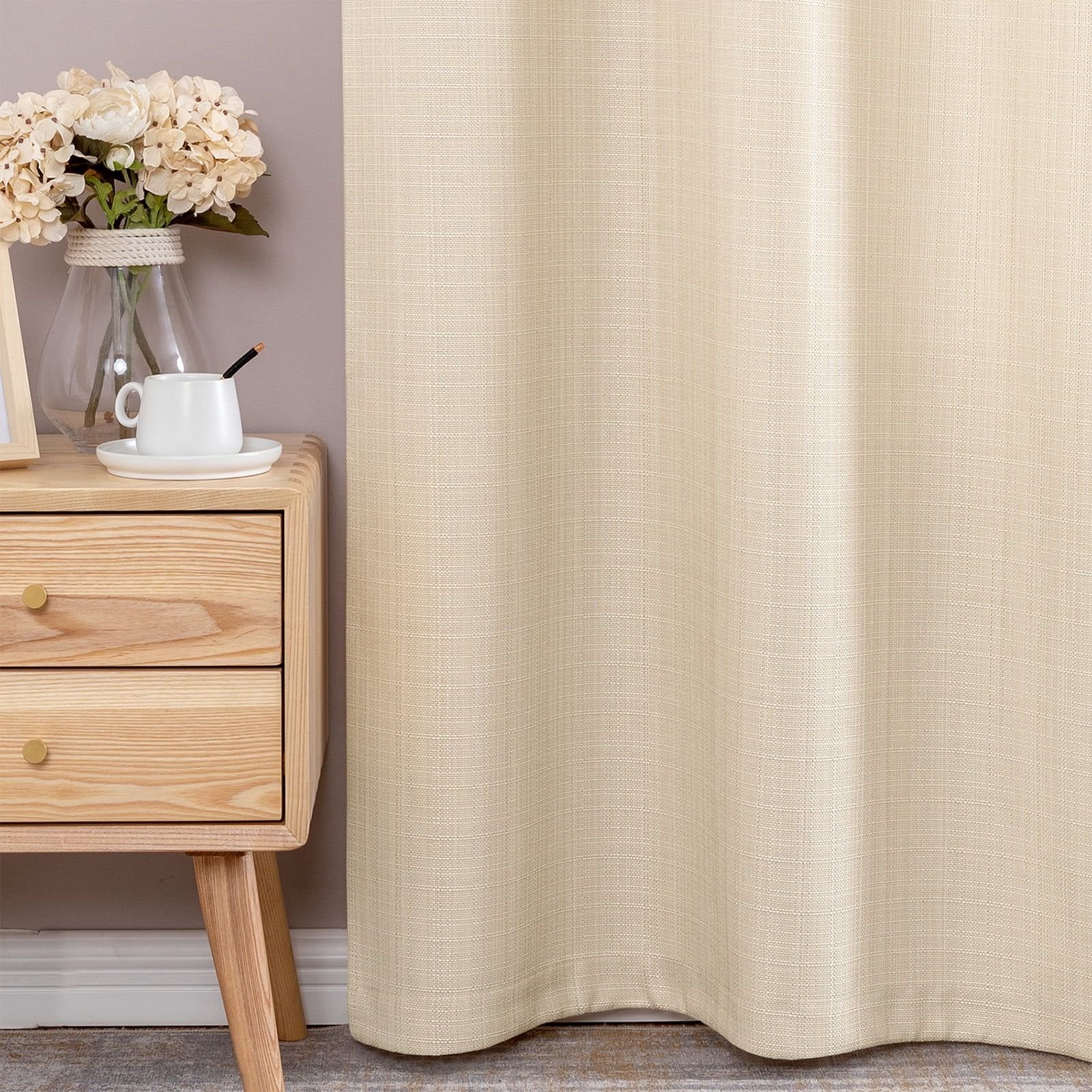 Home > Linen Textured Curtains 84 inches Beige Bedroom Living Room Window Curtain Set Light Filtering Drapes Grommet Top 2 Panels
