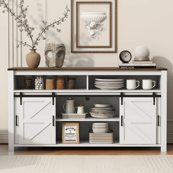 Home > U_STYLE 59.3''Sideboard with Sliding Barn Door and Mesh Panels,Farmhouse Buffet with Open Storage,Suitable for Living Room, Hallway, Balcony,Kitchen