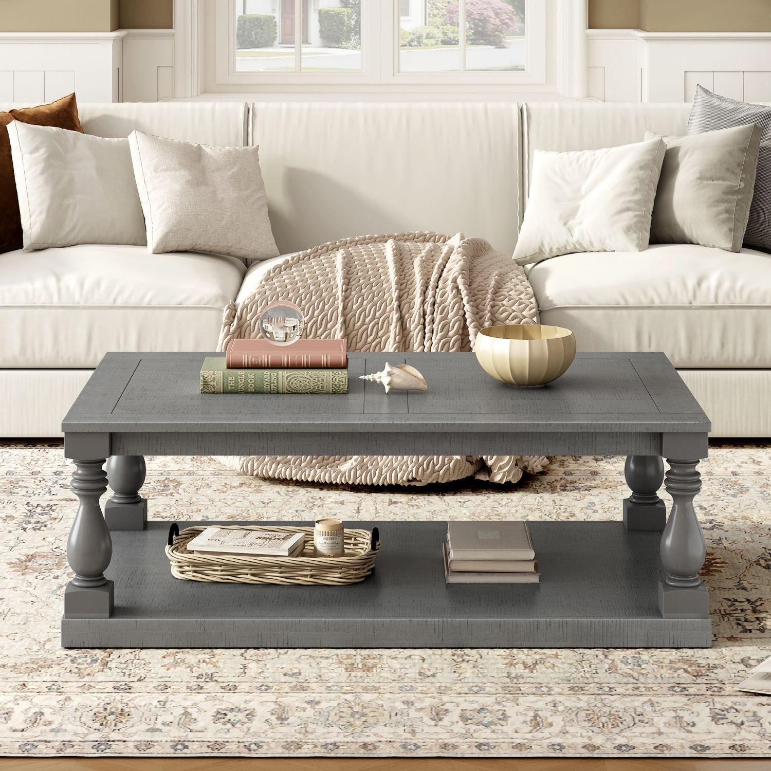 [Vintage Vase Column Legs]:Featuring gracefully sculpted vase column legs, this retro coffee table brings a unique architectural flair to any living space. The intricately designed supports evoke a sense of artistic heritage while ensuring robust stability and durability. Combining classic aesthetics with modern manufacturing techniques, it stands as a conversation piece that enriches your interior decor.