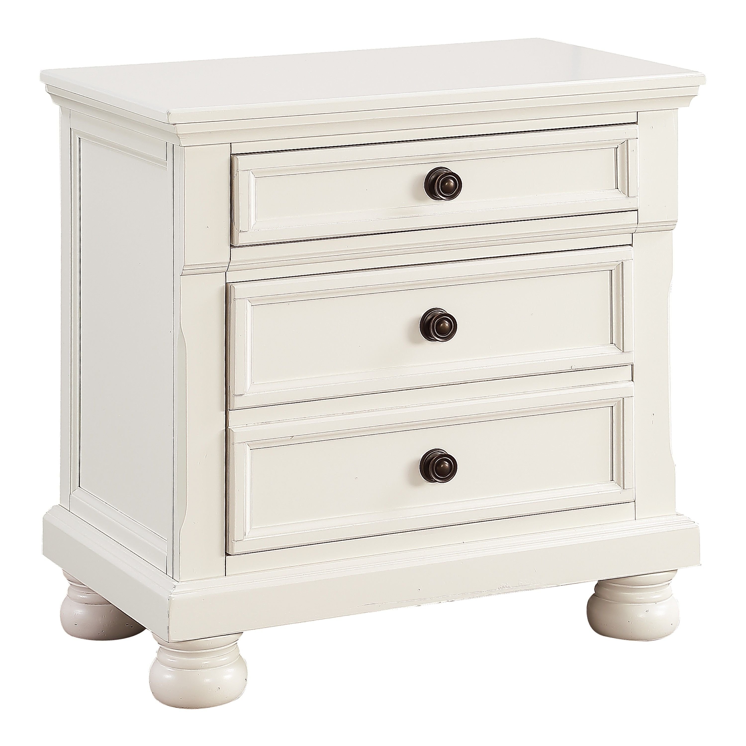 The nightstand's White finish can transition from traditional to country casual, with antiqued bronze knob hardware punctuating the look of each framed drawer front and bun feet providing support. The hidden drawer of the nightstand provides discrete storage space for your valuables.