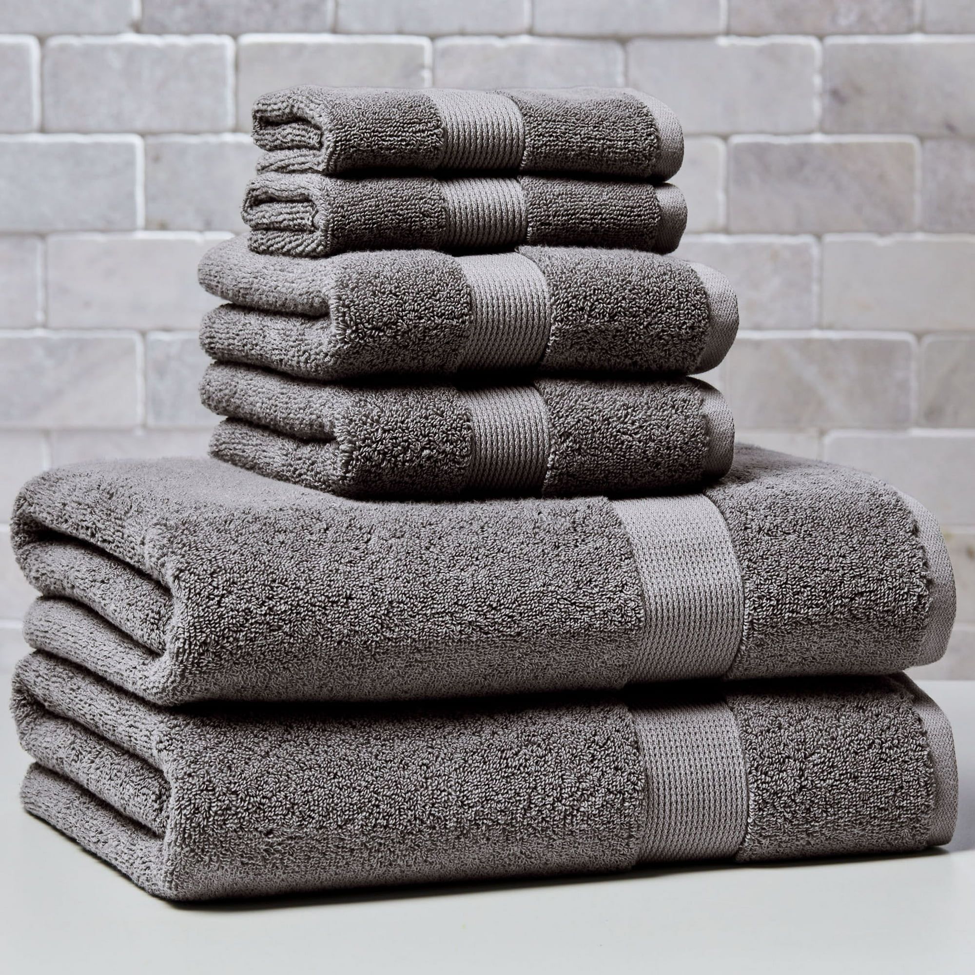 Signature Soft Solid Cotton 6 Piece Bath Towel Set,Grey Flannel
