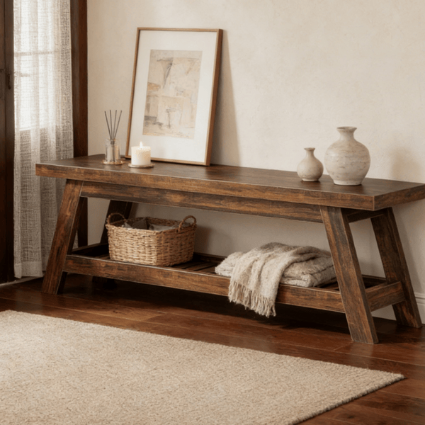 Elegant Wood Tone - Upgrade your entryway with our stylish wooden bench, featuring a warm wood-tone finish. Its timeless design complements any decor, adding both functionality and aesthetic appeal to your space.